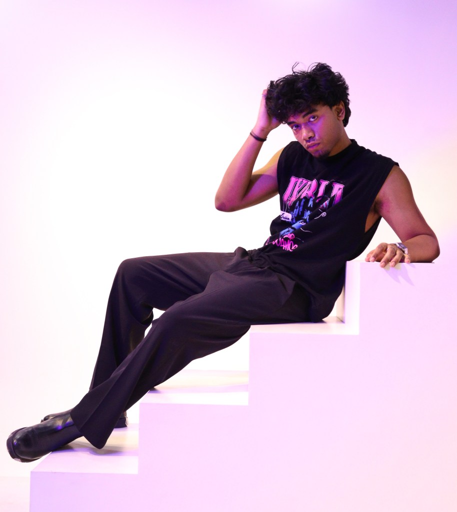 For Alan Tirkey, 22, a student at the College of Vocational Studies, Delhi, black isn’t just a colour it’s a philosophy. With 80% of his wardrobe dedicated to it, he believes it eliminates distractions and enhances focus. “Wearing black makes me feel powerful, sharp, and free from unnecessary noise,” he says. His go to look? A classic black t-shirt and shorts, paired with minimalist jewelry for a refined touch. For a comfortable yet all black ensemble, he also opts for an oversized hoodie with joggers or a relaxed linen shirt with wide leg pants, always effortless, always sleek.